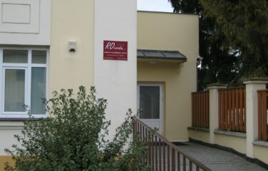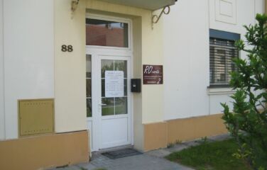 Vchod z ulice Prostějovská: ambulance 1 v pravé části budovy, ambulance 2 ve středu budovy